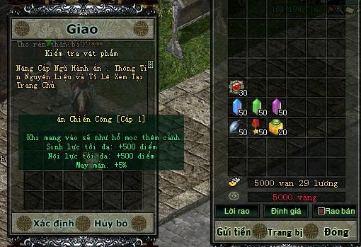 Lưu ý : Khi nâng cấp chỉ cần đặt ấn vào , mọi nguyên liệu để ở hành trang